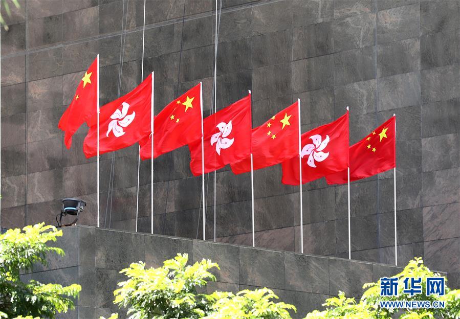 这是8月5日在香港岛北角的培侨中学内拍摄的升旗典礼。 新华社记者 吴晓初 摄