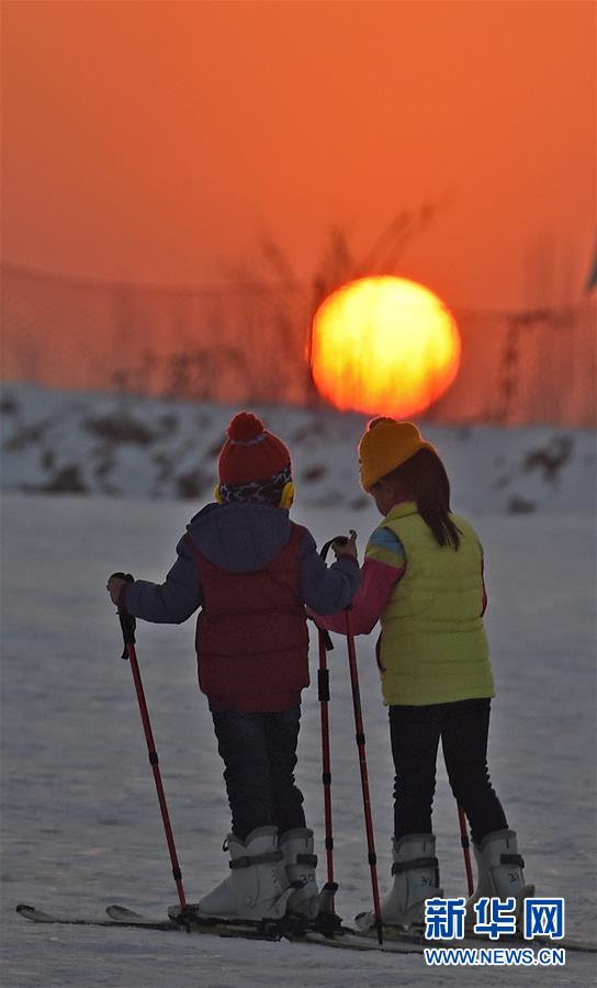 新中国成立以来,专业体育和全民健身共同发展,共同促进体育事业的日益繁荣。 图为2016年1月1日,市民在银川市鸣翠湖四季滑雪场滑雪度新年。 新华社记者王鹏摄