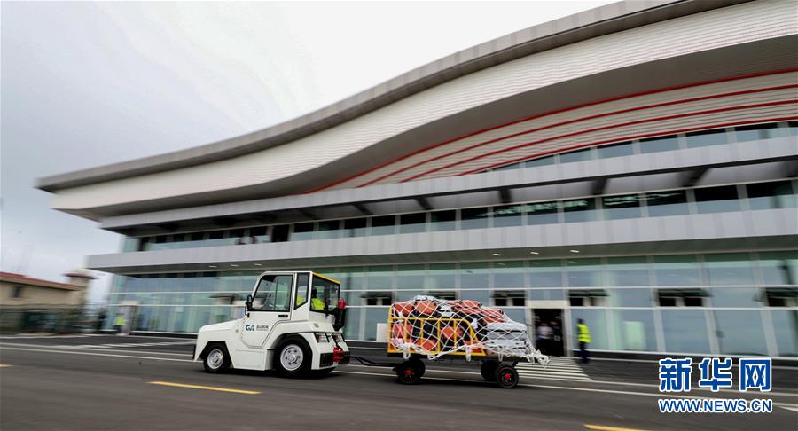 在重庆巫山机场通航前的综合演练中,巫山机场行李转运车在进行旅客行李运送演练(7月16日摄)。 新华社发(重庆机场供图)