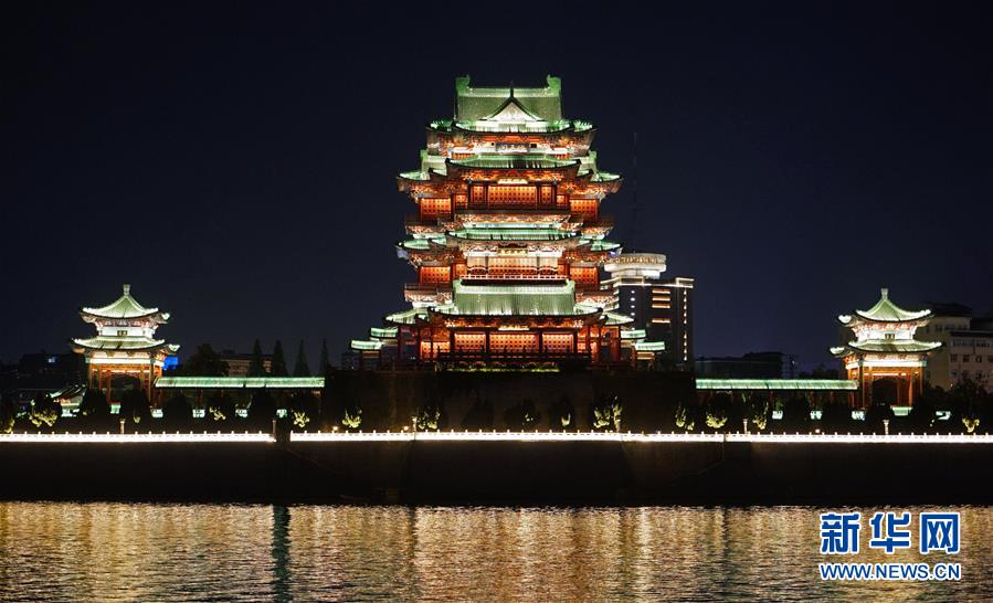 这是江西南昌赣江岸边滕王阁夜景(8月6日摄)。新华社记者 万象 摄