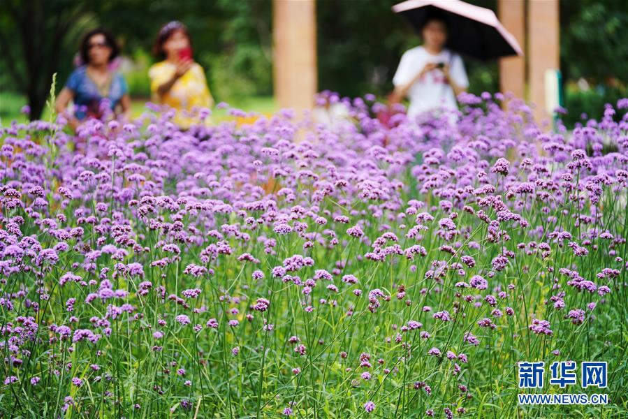 8月7日,在太阳岛风景区,游客在花丛中游玩拍照。新华社记者 王建威 摄