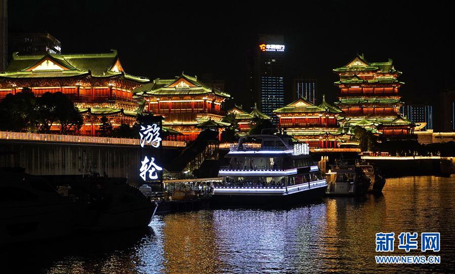 在江西南昌,游客在游轮上观赏夜景(8月6日摄)。 夏季,江西南昌市赣江畔高楼灯光璀璨,五光十色的灯光组成了壮观的灯光秀,吸引了大批游客。据介绍,近年来,南昌为发展“夜经济”,着力打造夜游项目,夜游项目以滕王阁为核心,借助赣江两岸景观照明,结合同步音效,打造立体、动态、富有江西元素的风景,让游客感受夜景的美丽和江西的历史文化。 新华社记者万象 摄