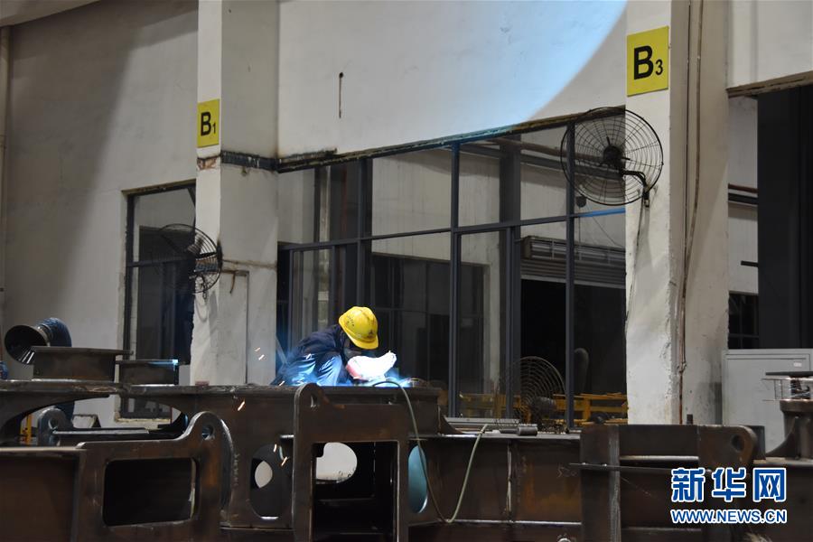 8月6日晚,焊接工人在作业。新华社记者 白田田 摄
