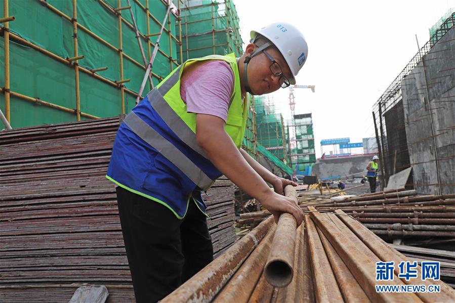 8月9日,新员工张世炯在工地施工。新华社记者 金良快 摄