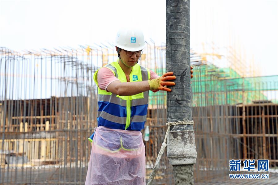 8月9日,新员工董天印在工地浇筑混凝土。新华社记者 金良快 摄