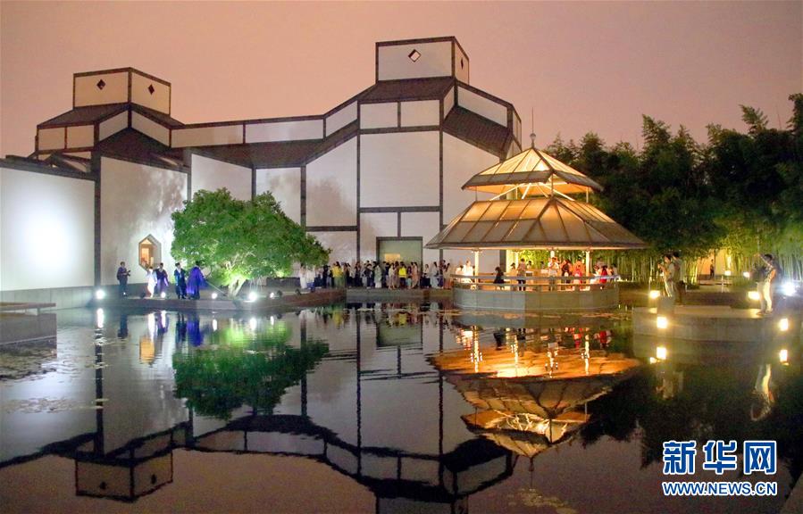 人们在江苏苏州博物馆举行的博物馆奇妙夜开放活动中参观游览(5月18日摄)。新华社发(王建康 摄)
