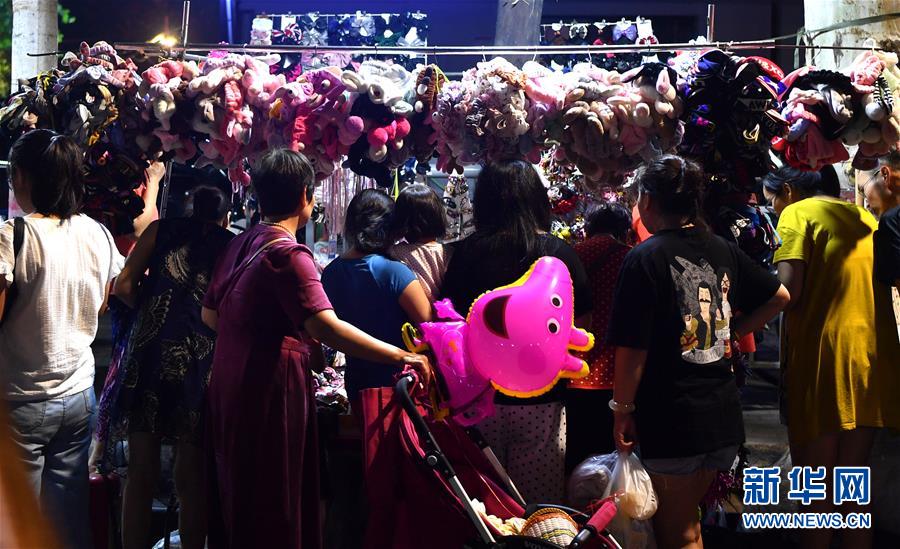 人们在河南省郑州市健康路夜市上挑选商品(8月7日摄)。新华社记者李嘉南摄