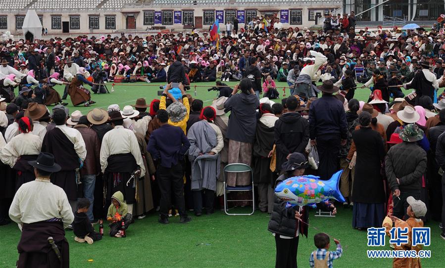 8月9日,观众在西藏当雄县观看民间传统拔河比赛。 当天,西藏当雄县海拔4300米的赛马场举行激烈的民间传统拔河比赛,来自当雄县各乡镇的牧民妇女盛装参加拔河比赛,场面喜庆而热闹。 新华社记者 李梦娇 摄