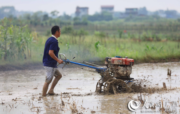 人民网融安8月9日电 8月8日是农历二十四节气中的立秋时节,广西柳州市融安县正值“双抢”季节,当地农民顶高温、冒酷暑,抢抓农时,抢收早稻,及时耙田整地,抢种第二季优质水稻,广袤的桂北大地处处都是各族群众忙碌的身影。(张芳 谭凯兴)