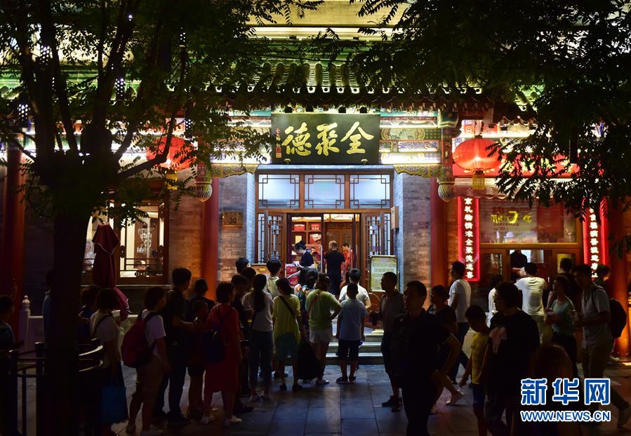 人们在全聚德北京前门店门前排队等候用餐(8月8日摄)。新华社记者张晨霖摄