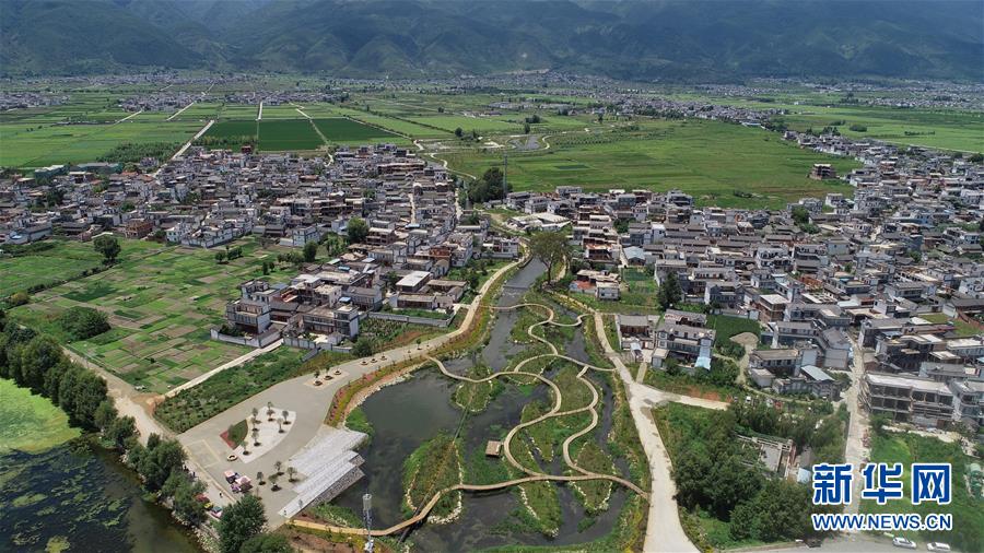 大理洱海的入湖河道阳溪及湿地风景(8月10日无人机拍摄)。 新华社记者 秦晴 摄