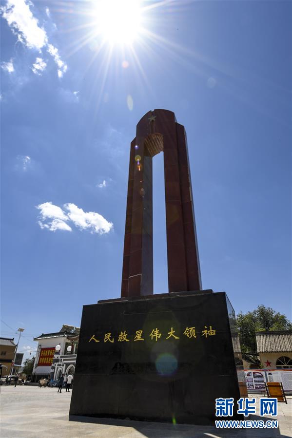 这是8月11日拍摄的宁夏西吉县单家集村群众自发捐款修建的纪念碑。新华社记者 冯开华 摄