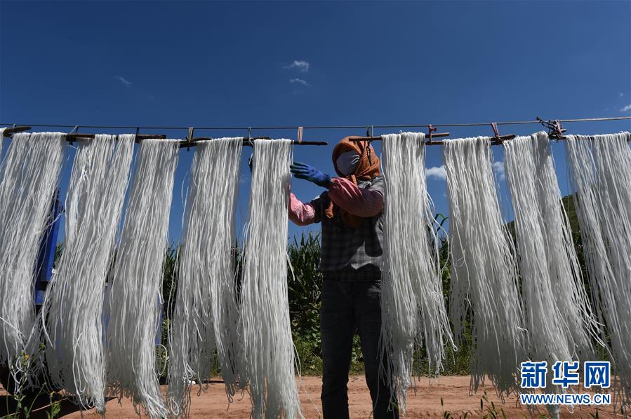 8月11日,宁夏西吉县兴隆镇王河村村民在晾晒“红军粉”。新华社记者 罗晓光 摄