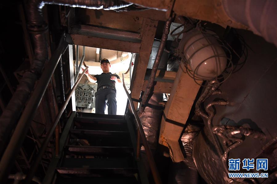 杨双峰在原163号南昌舰上进行日常巡查(8月8日摄)。 新华社记者 戴天放 摄