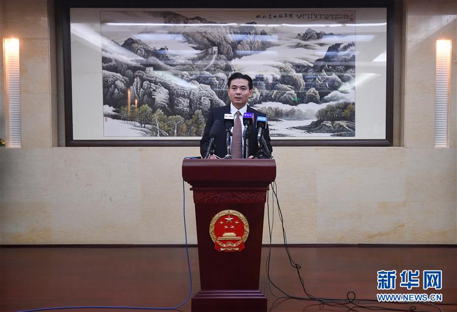 8月12日,国务院港澳办发言人杨光在北京就香港11日晚极少数暴徒在多处向警察投掷汽油弹并导致警员烧伤一事表明态度,对实施这种严重违法犯罪的暴徒予以严厉谴责。 新华社记者 陈晔华 摄