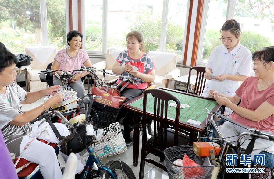 唐山市截瘫疗养院的住院者在一起玩牌(7月25日摄)。 新华社记者 赵鸿宇 摄