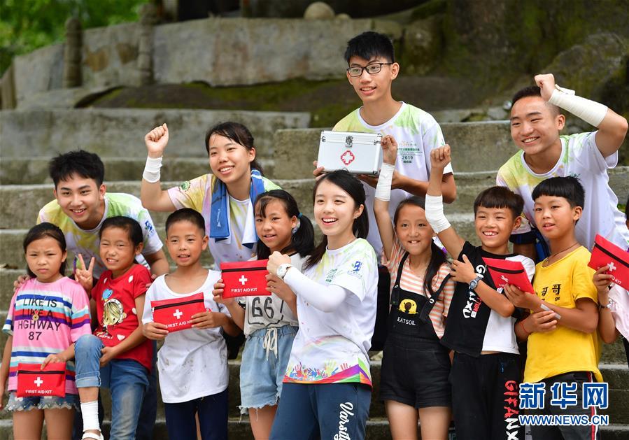 志愿者和乌英苗寨的孩子们在卫生课上(8月10日摄)。 新华社记者 黄孝邦 摄