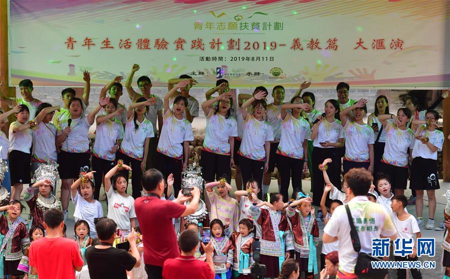 志愿者与乌英苗寨的孩子们进行文艺汇演(8月11日摄)。 新华社记者 黄孝邦 摄