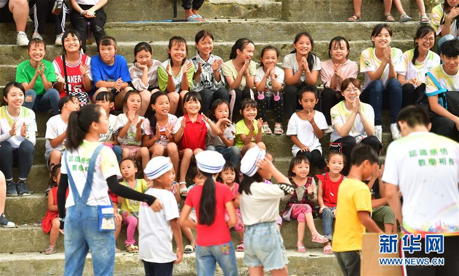 志愿者和孩子们在表演课上观看表演(8月10日摄)。 新华社记者 黄孝邦 摄