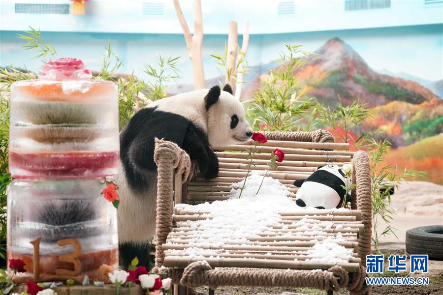 8月12日,大熊猫思嘉在熊猫馆内活动。 新华社记者 王松 摄