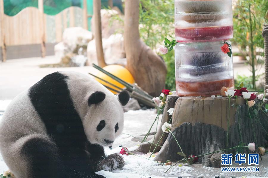 8月12日,大熊猫思嘉在熊猫馆内活动。 新华社记者 王松 摄