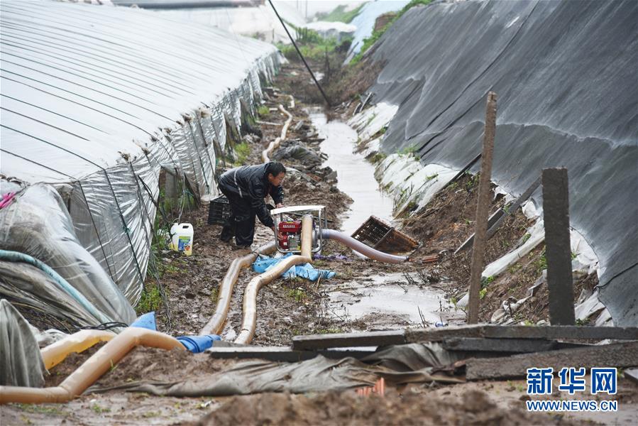 8月12日,在寿光市纪台镇东方西村,受灾菜农加紧排出大棚积水。 受台风“利奇马”影响,“蔬菜之乡”山东寿光有1.8万个大棚进水受灾。目前,村民正积极排涝,降低损失,准备恢复生产。 新华社记者 王凯 摄