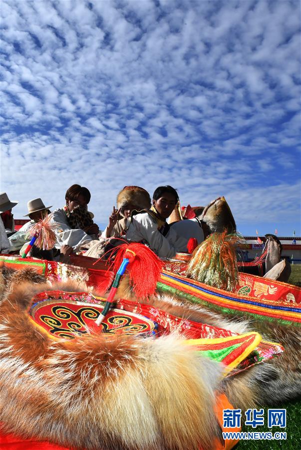 在西藏那曲市赛马节上拍摄的男式“天线帽”(8月10日摄)。 西藏藏北安多县牧民有戴“天线帽”的传统,“天线帽”传统上由羊羔皮、狐狸皮等缝制,现多为羊羔皮及人造皮缝制。不论男女所戴的“天线帽”顶上都有一根类似天线的条状彩线编织物竖起。 新华社记者 觉果 摄