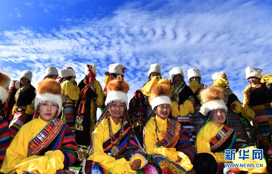 在西藏那曲市赛马节上拍摄的戴“天线帽”的西藏安多妇女(8月10日摄)。 西藏藏北安多县牧民有戴“天线帽”的传统,“天线帽”传统上由羊羔皮、狐狸皮等缝制,现多为羊羔皮及人造皮缝制。不论男女所戴的“天线帽”顶上都有一根类似天线的条状彩线编织物竖起。 新华社记者 觉果 摄