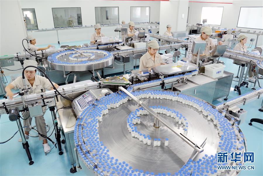 位于沈阳的东北制药集团的员工在生产线上作业(资料照片)。新华社发(东北制药供图)