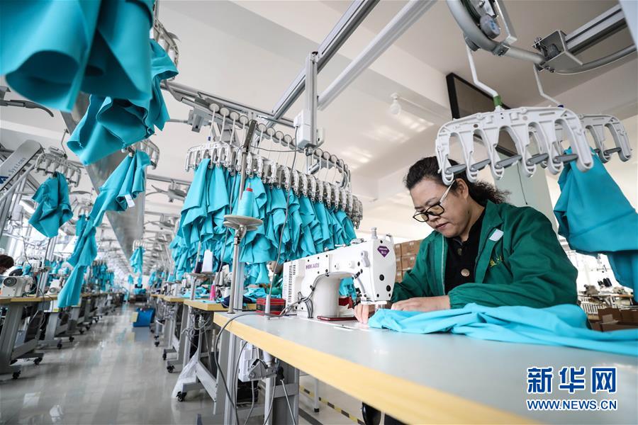 3月6日,工人在葫芦岛益丰(集团)运动服饰有限公司生产车间加工泳衣。新华社记者 潘昱龙 摄