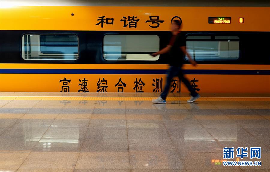 8月13日,高速综合检测列车停靠在郑州东站。 当日,郑万铁路郑州东至邓州东段正式开始联调联试,为开通运营提供重要技术保障。郑万铁路是河南省“米”字形铁路网的重要组成部分,设计时速为350公里。 新华社记者李安摄