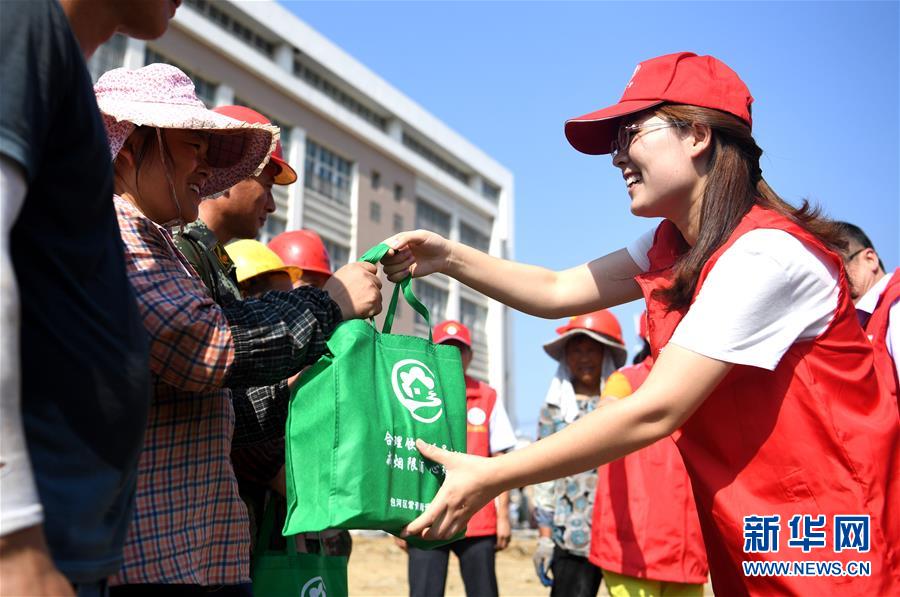 8月13日,常青街道凌大塘社区志愿者为施工人员送上防暑用品。 近日,安徽合肥持续高温天气,合肥市包河区常青街道凌大塘社区的志愿者来到辖区工地,为施工人员送上西瓜、饮料、防暑药品等。 新华社记者 刘军喜 摄