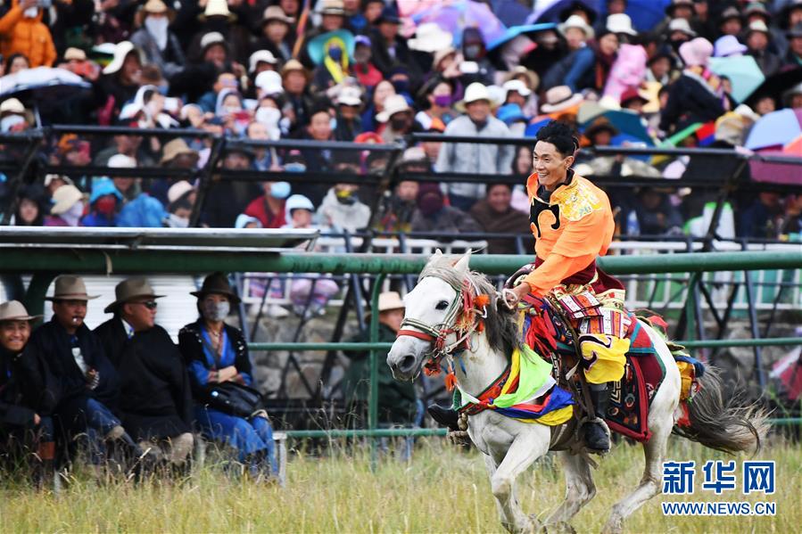 8月13日,骑手在赛马节开幕式上表演。 当日,第十二届格萨尔赛马节在甘肃省甘南藏族自治州玛曲县拉开帷幕。本届赛马节为期6天,共有来自西藏、青海、内蒙古、四川、甘肃等省区的52支队伍900多匹赛马参加速度赛和耐力赛等项目的比赛,期间还将举办草原音乐节、马术表演、民间弹唱等活动。 新华社记者 陈斌 摄