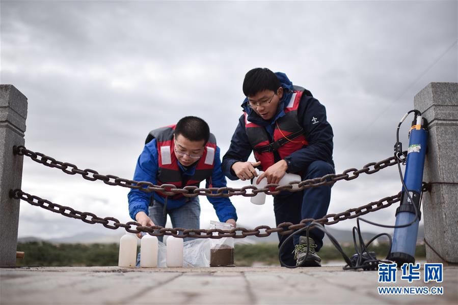 8月8日,长江科学院科考队员刘敏(右)、赵良元在聂恰曲采集水样。新华社记者 吴刚 摄