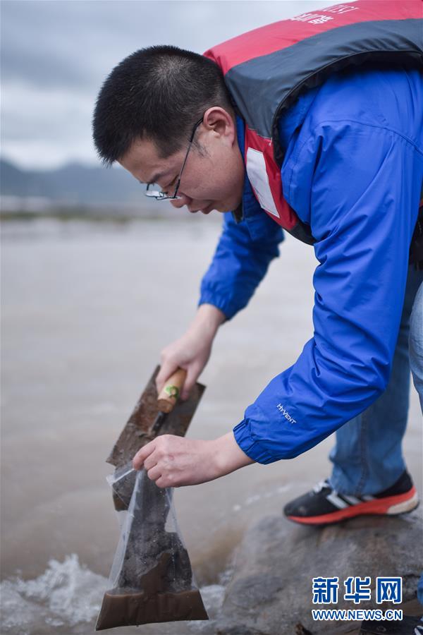 8月8日,长江科学院科考队员赵良元在聂恰曲采集泥沙样本。新华社记者 吴刚 摄