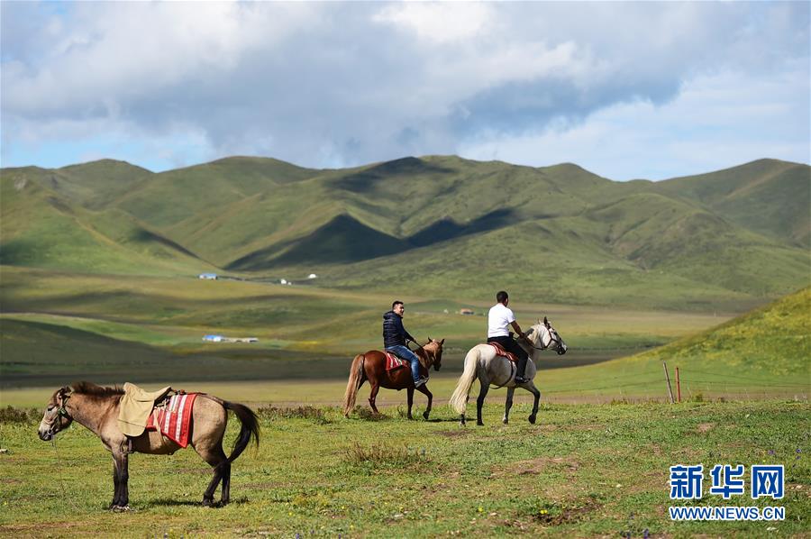 8月13日,游客在甘南藏族自治州碌曲县尕海镇尕秀村草原上骑马。 近年来,甘肃省甘南藏族自治州围绕少数民族风情和独特的生态资源,大力发展旅游产业,结合“全域无垃圾”创建行动提升甘南藏区旅游品质,打造出尕秀、香告、扎尕那等上百个藏族文化特色浓郁的旅游示范村,引导农牧民群众在参与乡村旅游等文旅产业的过程中实现“绿色”致富。 新华社记者 赵丁喆 摄