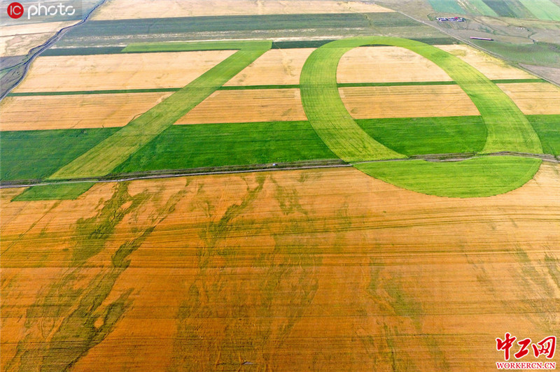新疆哈密农民田野作画颂祖国 献礼新中国成立70周年