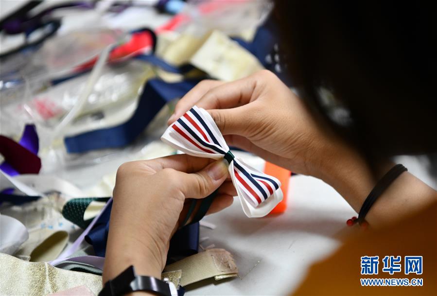 8月14日,一位学生在制作手工艺品。新华社记者 李然 摄
