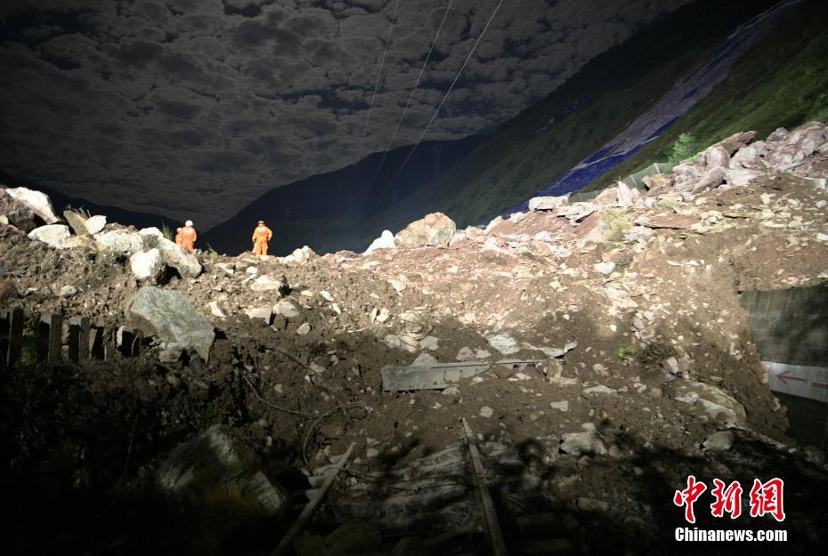 8月15日,四川甘洛,成昆铁路埃岱站区间附近发生的山体垮塌现场,失联人员搜救工作紧张进行。图为垮塌搜寻现场。中新社记者刘忠俊 摄