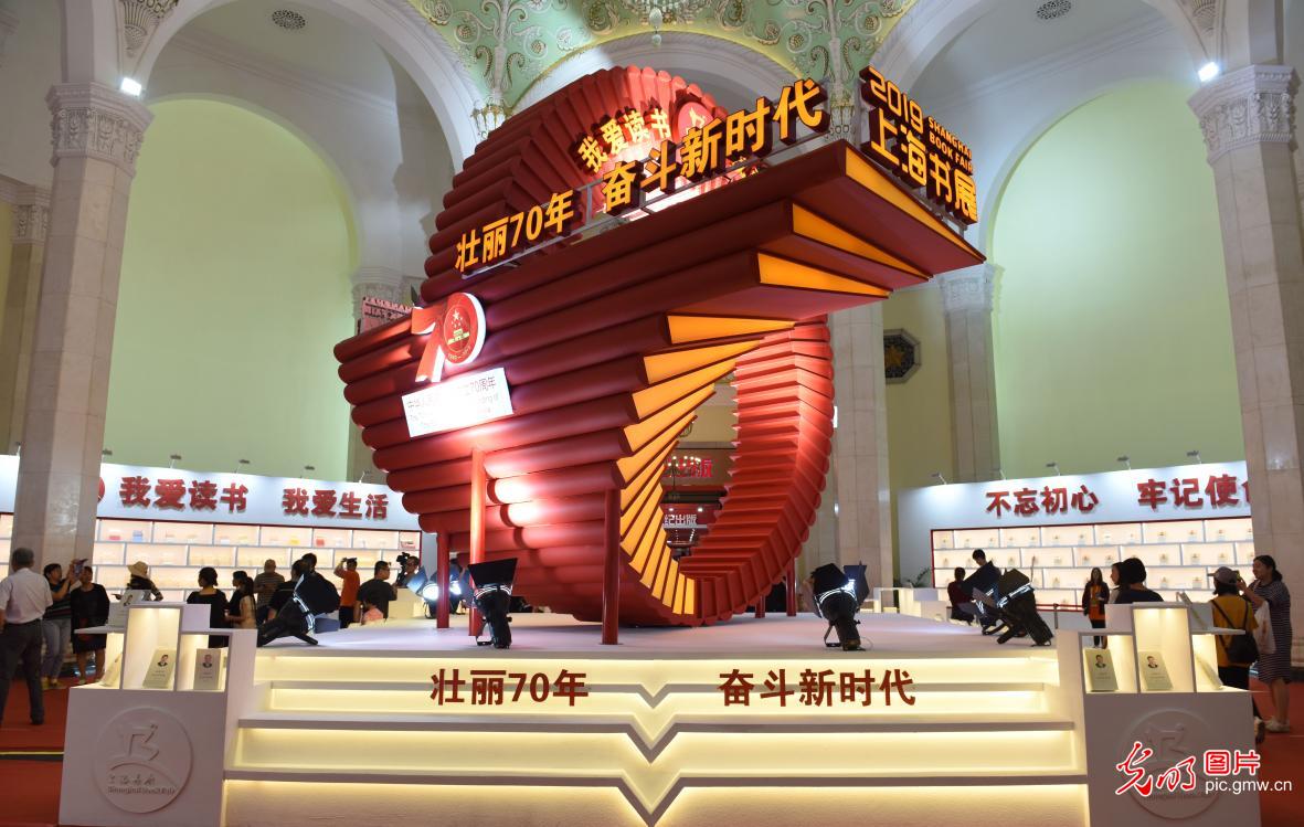 8月14日,2019上海书展在上海展览中心开幕,全国500多家出版社的16万余种图书参加展销。书展期间,阅读活动、新书签售、作家研讨、讲座等众多活动将在上海展览中心和百余个分会场同步举行。(陈彬摄/光明图片)