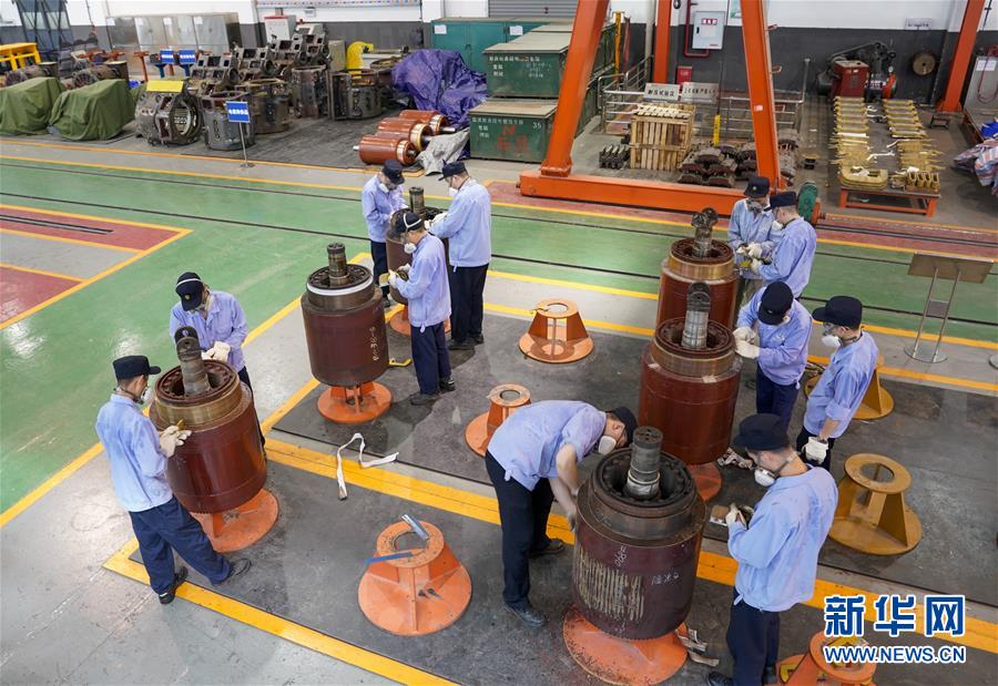 8月14日,在重庆机务段大部件检修车间的电机电枢作业区内,电枢清理工在高温的环境中工作。新华社记者 刘潺 摄