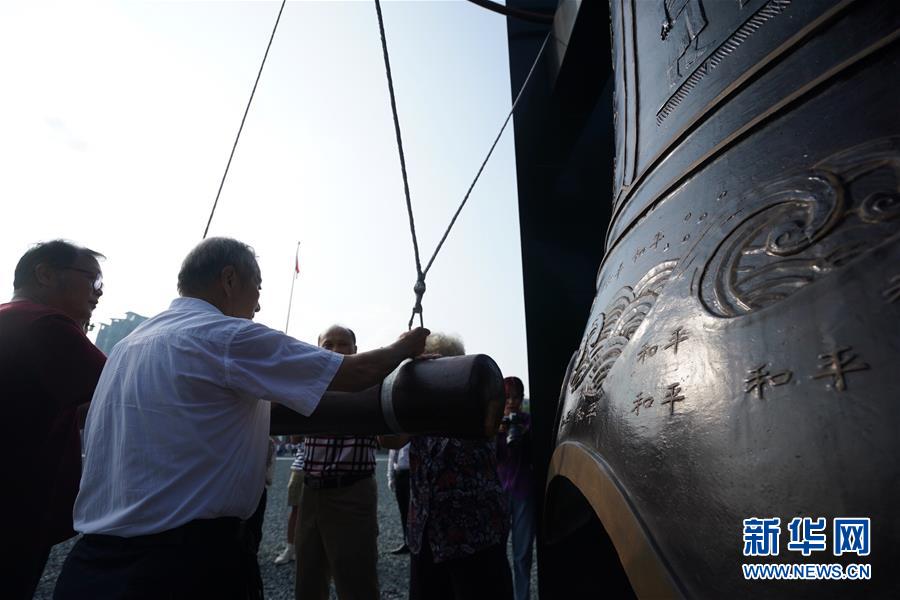 8月15日,人们在侵华日军南京大屠杀遇难同胞纪念馆撞响和平大钟。新华社记者 季春鹏 摄