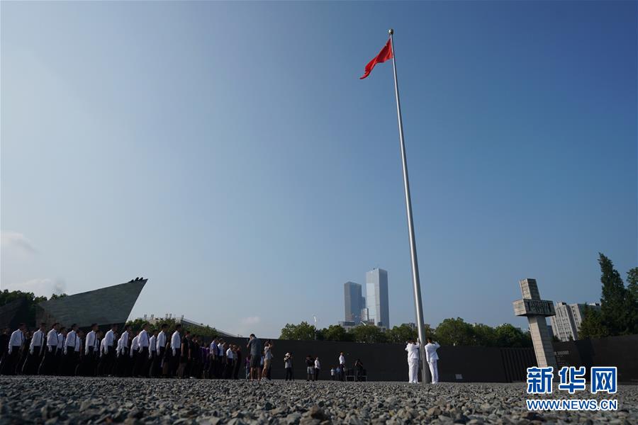 8月15日,侵华日军南京大屠杀遇难同胞纪念馆举行升国旗仪式。新华社记者 季春鹏 摄