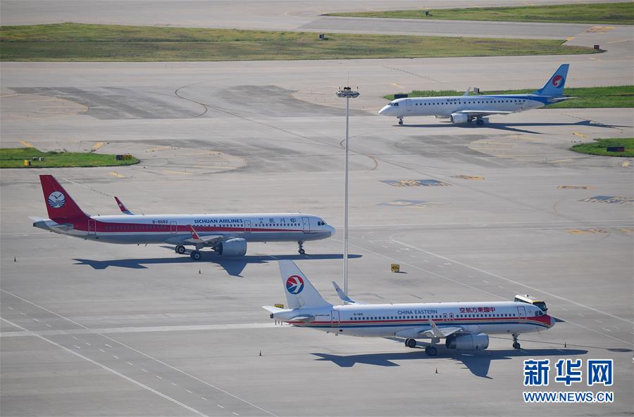 8月15日,飞机停靠在西安咸阳国际机场。新华社记者 邵瑞 摄