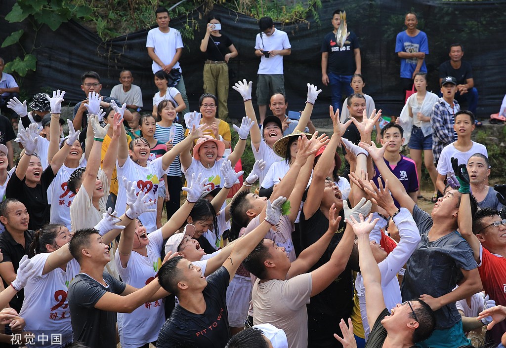 广西柳州:乡村举行传统闹鱼节 村民争抢“飞鱼”