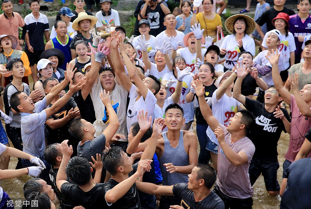 广西柳州:乡村举行传统闹鱼节 村民争抢“飞鱼”