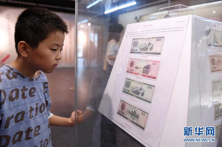 8月15日,小朋友在观看“中国银行外汇兑换券”。 新华社记者 林善传 摄
