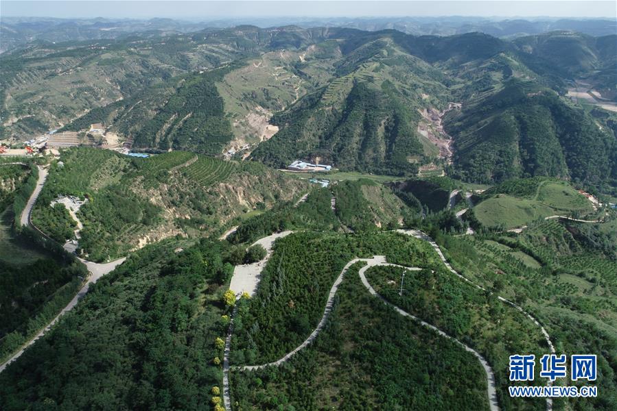 空中俯瞰吴起镇“切尾巴”战役所在地(8月7日无人机拍摄)。 新华社记者 罗晓光 摄