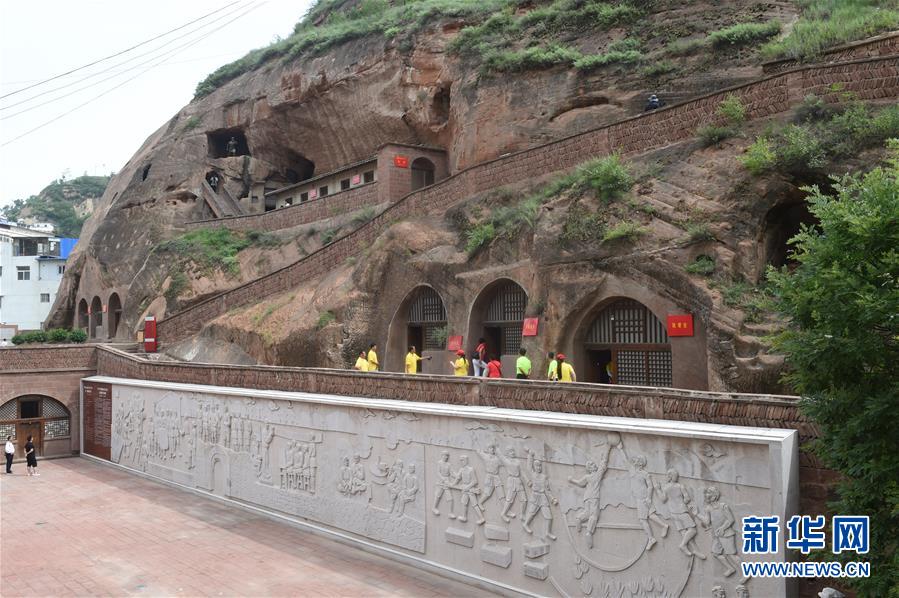 1936年7月,中国人民抗日红军大学随党中央迁至陕西省志丹县,在山崖上的窑洞中艰苦办学。这是学校外景(8月8日摄)。 新华社记者 罗晓光 摄