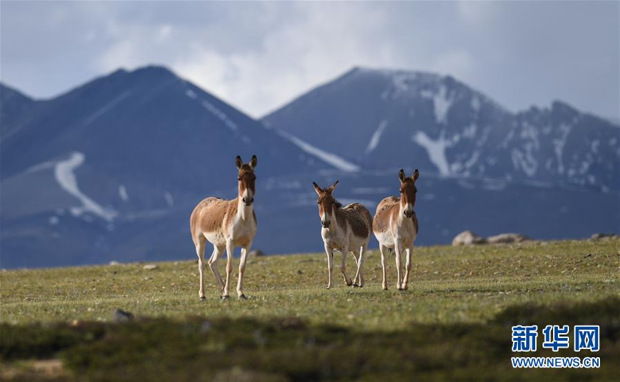 西藏札达县香孜乡热布加林牧场上的藏野驴(7月29日摄)。新华社记者 晋美多吉 摄